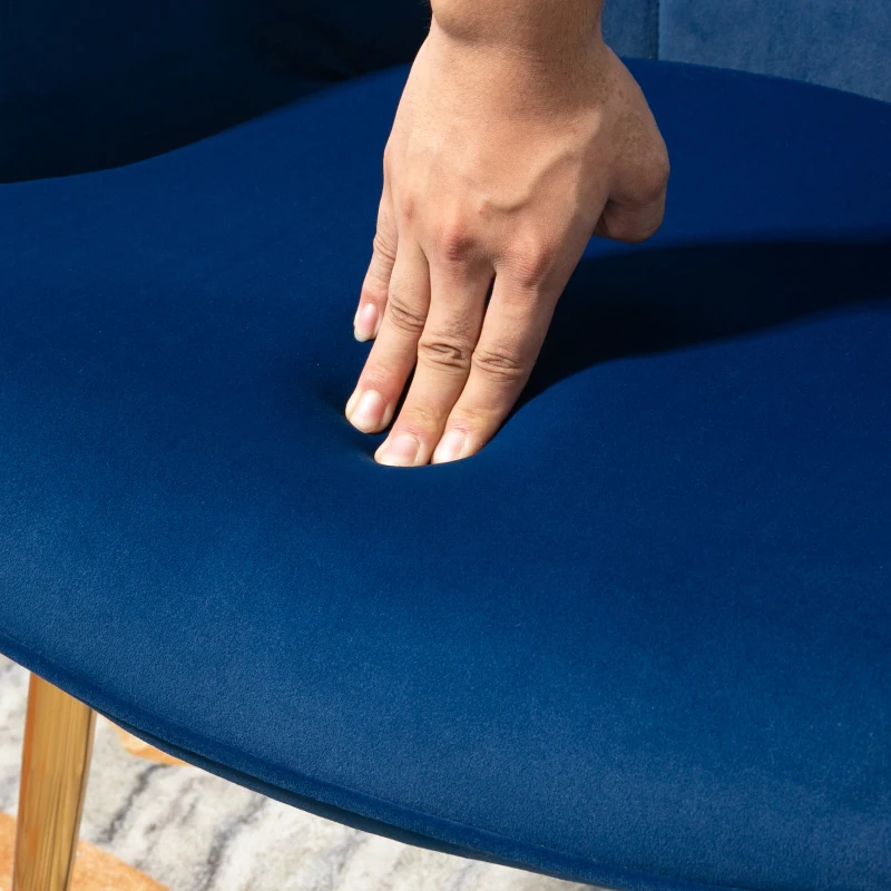 Best Modern Armchair with Footstool, Upholstered Accent Chair with Ottoman, Steel Legs, Velvet Wingback Chair for Living Room, Bedroom, Home Study, Dark Blue