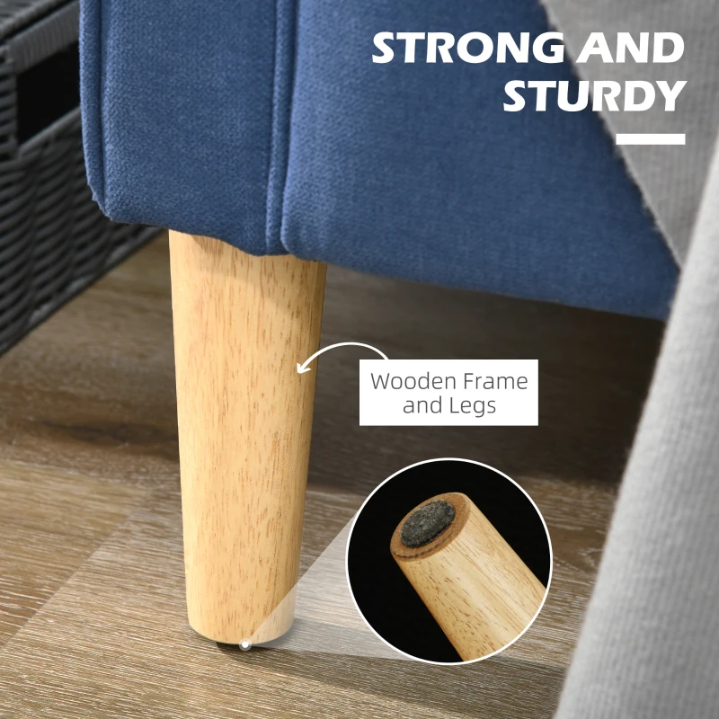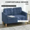 Built-in storage: This living room sofa with under-seat compartment to keep your living space clean and tidy. Sewn-on handle to lift up easily. || Compact design: This small sofa is spacious enough to spend time with friends or curl up in to grab some extra time-out space to yourself, but small enough that won’t take up too much space. || Comfortable: Home office sofa is filled with high-density sponge, S spring and elastic band inside for you to sink in and relax easily. Cotton upholstery is smooth and stylish. || Wooden frame: A strong structure with eucalyptus wood and rubber wooden legs supports this sofa for living room well. || Attractive Look: Classic and elegant design with button tufting for a luxurious seating experience, ideal for adding style and sophistication to any living space. Made from flame retardant materials.