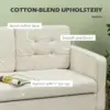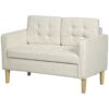 Built-in storage: This living room sofa with under-seat compartment to keep your living space clean and tidy. Sewn-on handle to lift up easily. || Compact design: This small sofa is spacious enough to spend time with friends or curl up in to grab some extra time-out space to yourself, but small enough that won’t take up too much space. || Comfortable: Home office sofa is filled with high-density sponge, S spring and elastic band inside for you to sink in and relax easily. Cotton upholstery is smooth and stylish. || Wooden frame: A strong structure with eucalyptus wood and rubber wooden legs supports this sofa for living room well. || Attractive Look: Classic and elegant design with button tufting for a luxurious seating experience, ideal for adding style and sophistication to any living space. Made from flame retardant materials.