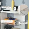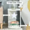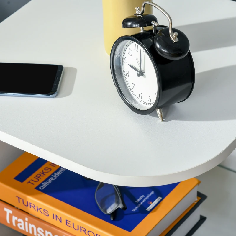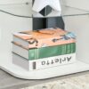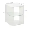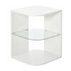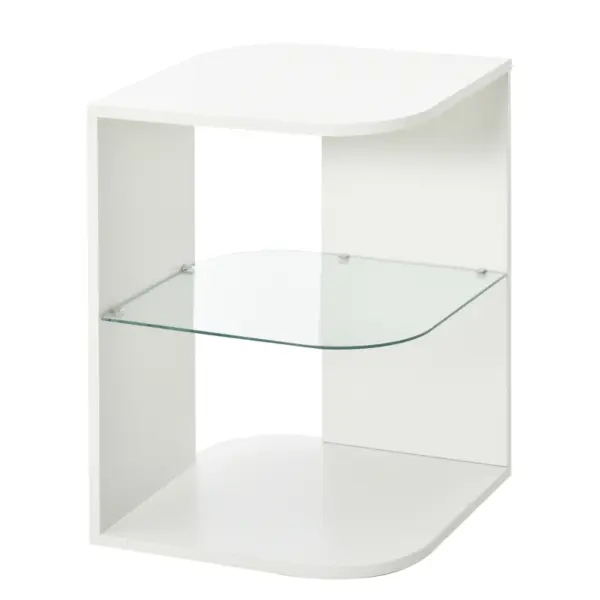 MODERN DESIGN: Sleek and curved structure – a great way to update your home and office space instantly. Glass shelf for extra cool points. || GLASS SHELF: Creates three storage levels – flat table top for display. Easy to keep the surrounding space tidy. || STURDY: Structure made from MDF, suited to everyday use. Large and flat base for balance. || DIMENSIONS: 56H x 40W x 40Dcm. Top and bottom shelf: 40L x 40Wcm. Glass shelf: 38.1L x 38.1Wcm. || MAXIMUM LOAD: Whole: 15kg. Glass shelf: 2.5kg. ASSEMBLY REQUIRED.