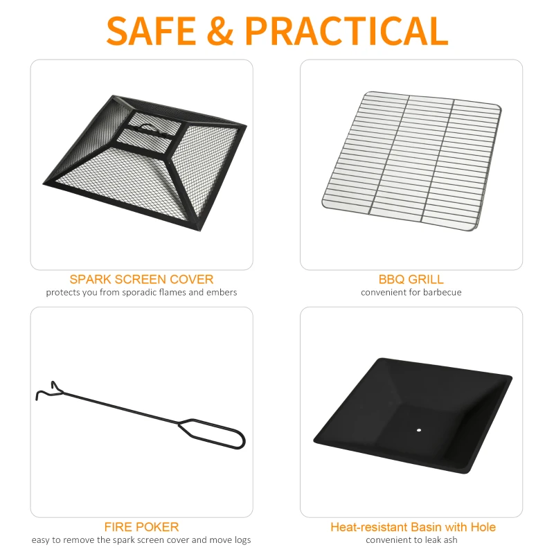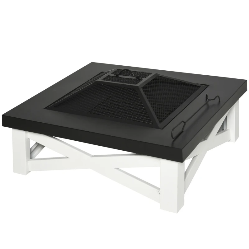 DUO DESIGN: The fire bowls for garden can be used as outdoor fire pits for keeping warm and also used as a BBQ fire pit with the included grill net. A great piece to have outdoors. || SAFE: Mesh lid to protect against sparks, embers and debris flying out. Poker is included to move parts around with zero direct contact. || STEEL FRAME: A solid structure for extended outdoor use. The main bowl of fire pits for garden is 500° resistant, so it doesn’t melt when heated. || FIREPIT DIMENSIONS: 38H x 86W x 86Dcm. Fire bowl: 11.5H x 58L x 58Wcm. || ASSEMBLY REQUIRED.