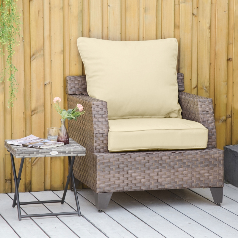 TWO-PIECE SET: Comes with a separate seat and back cushion – can position it how you want on the chair, or spread between two. || THICK FILLING: 15cm sponge for you to sit in comfort – great for relaxing during those long afternoons in the garden and outdoor areas. || OLEFIN COVER: Smooth and soft for extra comfort. Resistant to stains and fading. Removable and washable to keep clean. || DIMENSIONS: Seat cushion: 61L x 61W x 15Dcm. Back cushion: 63L x 55W x 15Dcm. || NO ASSEMBLY REQUIRED – UNPACK AND START ENJOYING STRAIGHT AWAY. NOTE: Please measure your cushion size carefully before buying.