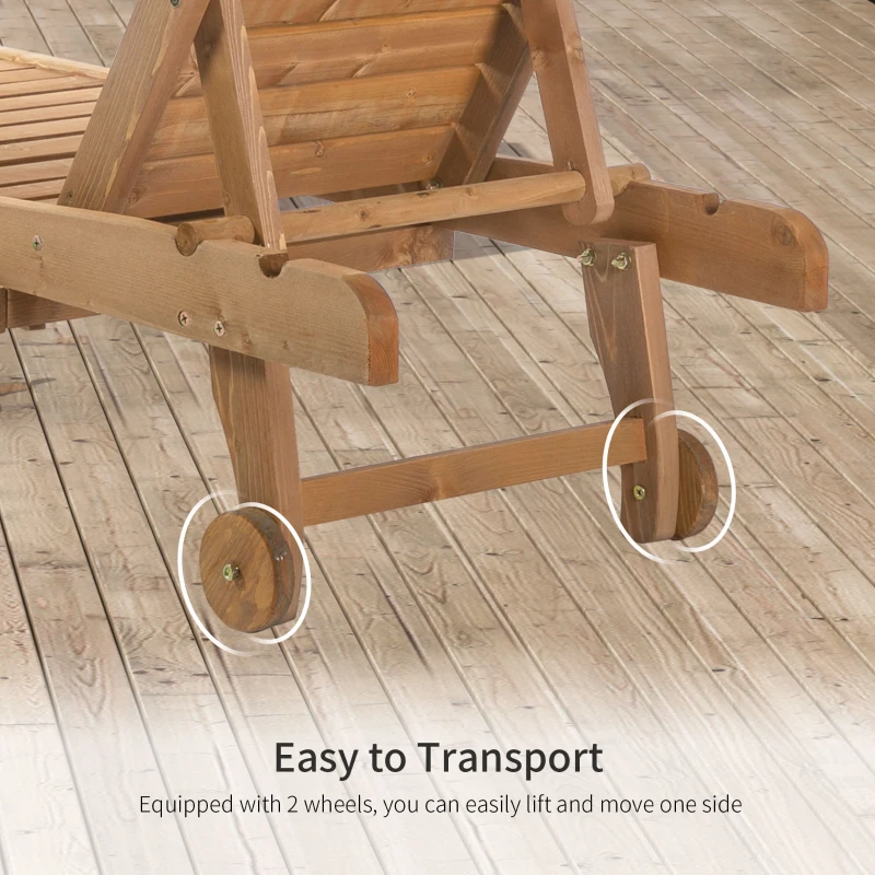 Pull-out side table: Easy to use whenever you want – garden sun lounger gives you a handy holding place for drinks and more. || Three-position reclining back: Set this portable sun lounger to a position you enjoy most. || Wooden structure: Tough and solid fir wood means a stable garden lounger, suitable for outdoor use. Look after the wood for prolonged use. || Long, single shape: Sun bed offers plenty of room for you to relax on. Two wheels to move easily; || Dimensions: 35H x 182L x 60W cm. Maximum load 113 kg. Assembly required.