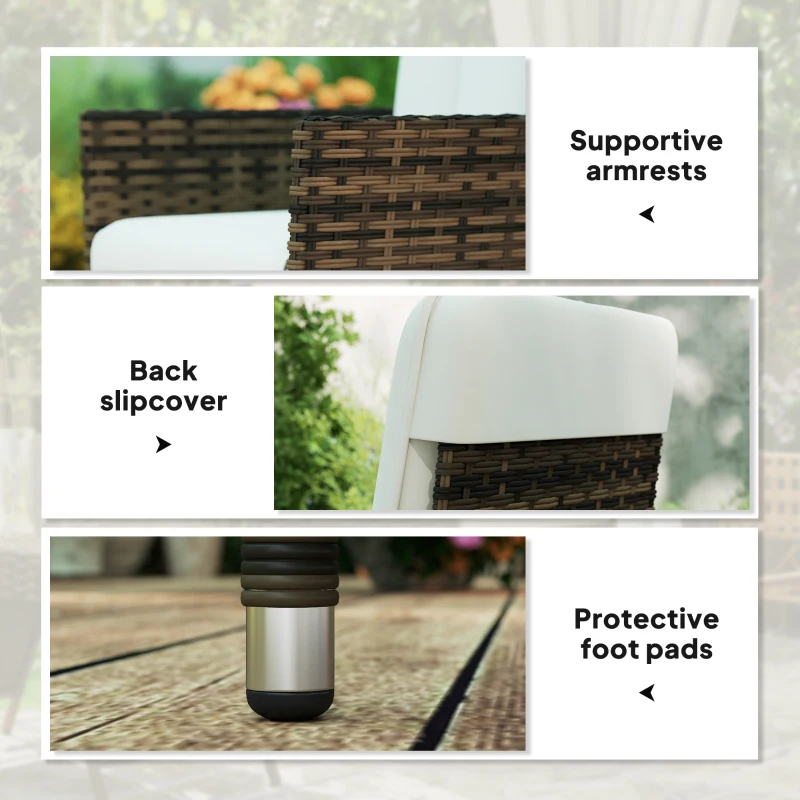 150° adjustable backrest: Easily switch from an outdoor recliner chair to a reclining sun lounger with a wide adjustment range from 105° to 150°. Set it to your optimal position and enjoy relaxing in the sun. || Cushioned seat: Enjoy plush comfort with thick padded cushions on this outdoor lounge chair. The seat cushion features a removable and washable 200 gsm fibre cloth cover to maintain hygiene and freshness. || All-weather PE rattan: This garden recliner chair boasts a double-strand half-round plastic rattan that is UV-resistant and easy to clean, protects the frame and ensures lasting outdoor use and style. || Robust construction: Crafted with a powder-coated steel frame, this recliner garden chair resists rust and weather damage, supporting up to 120 kg for reliable and safe seating. || Dimensions: Upright: 59W x 59D x 100H cm. Max. reclined: 59W x 103D x 73H cm. Seat: 44W x 45D x 39H cm. Maximum load: 120 kg. Assembly required.