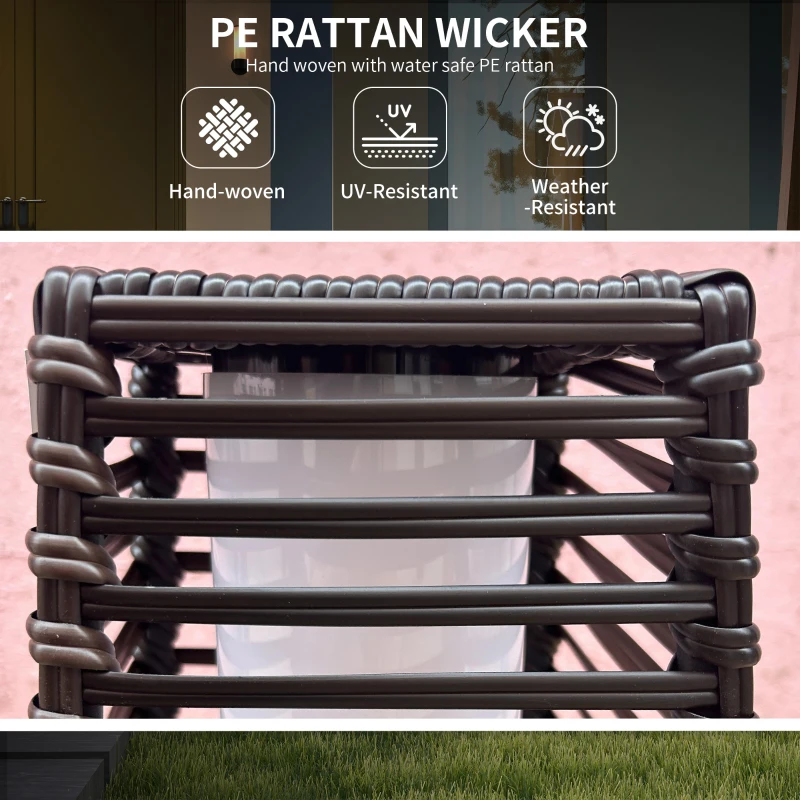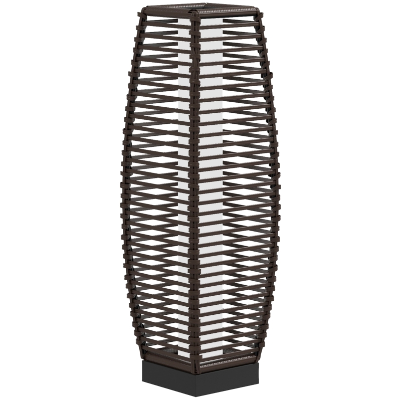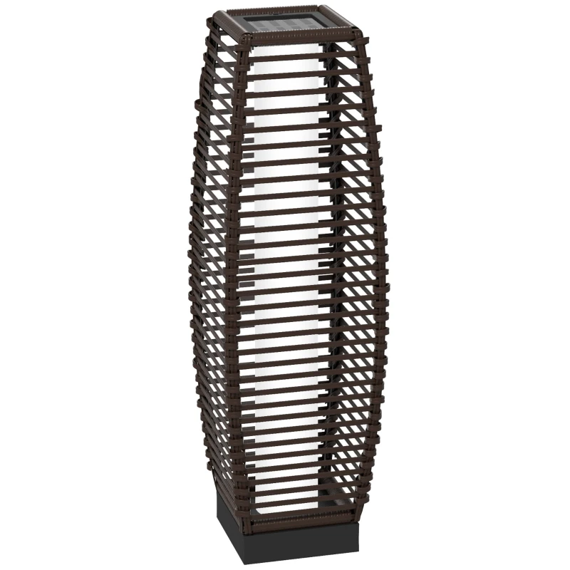 Outdoor solar garden light: A waterproof, set-it and forget-it lighting solution for your patio, pathway, or driveway. 15 lumens of light, a long shape and a neutral colour to blend in easily outdoors. || Built-in solar panel: Charges during the day and turns off automatically at night. Saves energy and is easy to use. || LED light: 2500K colour temperature of outdoor decorative lamp offers plenty of illumination. || Metal, wrapped in rattan: Powder coated for strength. Plastic wicker for style. IP44 rating. || Dimensions: 68H x 20W x 20Dcm. Solar light panel: 12W x 12Dcm.