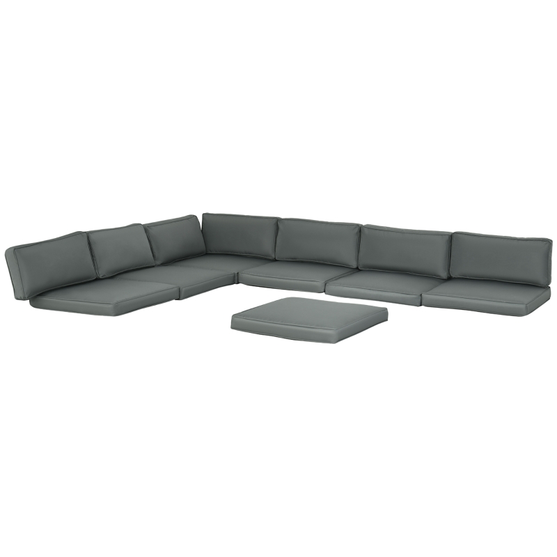 14 replacement garden seat cushions: Includes seven seat cushions and seven back cushions. Suitable for a seven-seat gardening dining set – rattan, wood and metal. || Comfortable: Each cushion is filled with lots of padding – these replacement cushions for rattan furniture keep you comfortable as you relax. || Polyester covers: Polyester is smooth, mild weather resistant. Fitted with zip fastenings, the covers of these outdoor furniture cushions are removable and washable. || Dimensions: Seat cushion: 65L x 65W x 8Dcm. Back cushion: 8H x 65L x 30Wcm. || Measure seat size carefully before purchase.