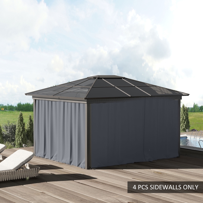 PACKAGE ONLY INCLUDES PANELS – NO GAZEBO FRAME. || FOR 3X3M GAZEBOS: An easy and cost-effective way to extend the life of your outdoor shelter with our gazebo side curtains. Please verify the size and model of your gazebo before purchasing. || FABRIC FORMATION: Durable and smooth polyester, looks beautiful once fitted on. These gazebo sides panels only can protect inside from direct sun and light weather. Zip fastenings to enter and leave gazebo easily. || EASY TO SET UP: Simply fit on and go. Hooks included for sliding rails, gazebo curtains waterproof can be used for different types. || DIMENSIONS: 270L x 185Wcm. 40 x hooks included. Not suitable for machine washing.