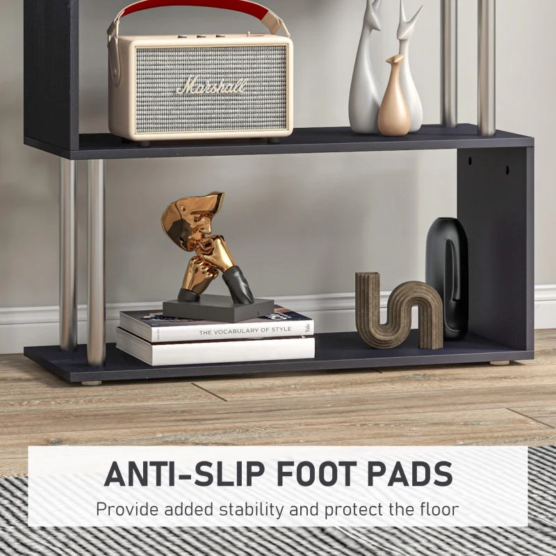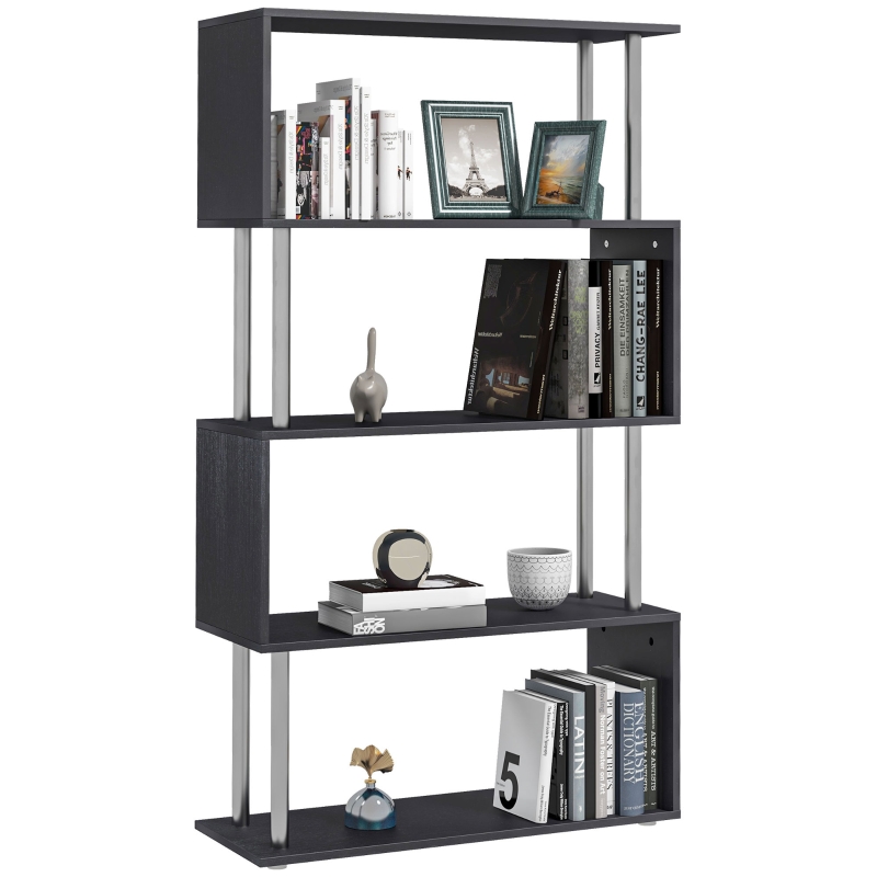 LOTS OF STORAGE: This S-shaped 5 tier bookcase offers multiple shelves for displaying and storing your favorite books, plants, photos, candles, and collectables in your home or office. || DOUBLES AS A ROOM DIVIDER: Doubles as a bookshelf or room divider with an open-back design to create a sense of space in a small room. || STURDY AND DURABLE: Lightweight yet stable construction makes this room divider bookcase easy to move in your home or office location. || UNIQUE MODERN DESIGN: It features a contemporary design which fits in well with any indoor home or office decor. Its a perfect addition to your study, living room, bedroom or office. || DIMENSIONS: Overall Dimension: 80L x 30W x 145Hcm, Weight Capacity: 25kg.