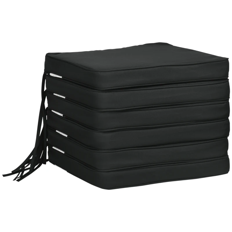 Best Set of 6 Chair Cushion Seat Pads Dining Chair w/ Straps Indoor Outdoor Removable Tie On Garden Patio Black