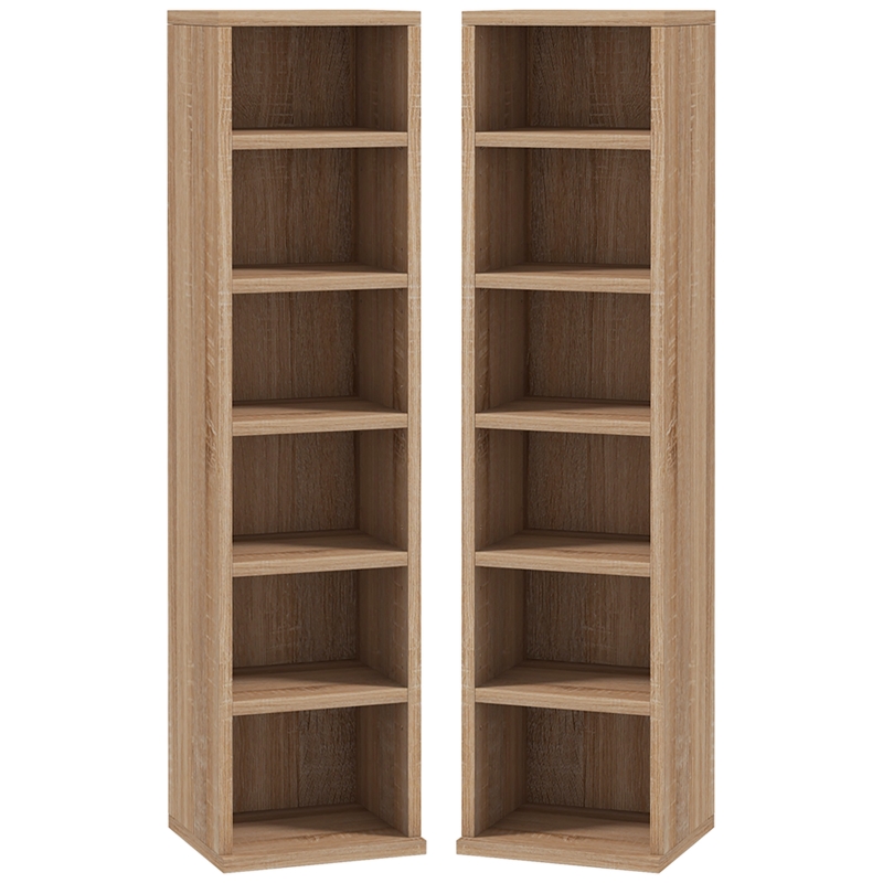 SET OF TWO: Provides double the amount of storage in the home or office, creating a neat and matching feel, wherever placed. || HOLDS UP TO 204 CDS: Two multi-functional media organizers, each suitable with 6 shelves for storing CDs, Blu-rays, video games and books, decoration items. || FIVE ADJUSTABLE SHELVES: Can be moved up/down, allowing you to set each compartment to a size which is suited for your storage needs. SOLID: Particle board construction is tough for reliable everyday use. || ANTI-TIPPING: Back straps to attach to the wall – safe for homes. DIMENSIONS: 88.5H x 21W x 22.5Dcm. Shelf: 12.5H x 17.5L x 17Wcm. || MAXIMUM LOAD 15KG. ASSEMBLY REQUIRED.