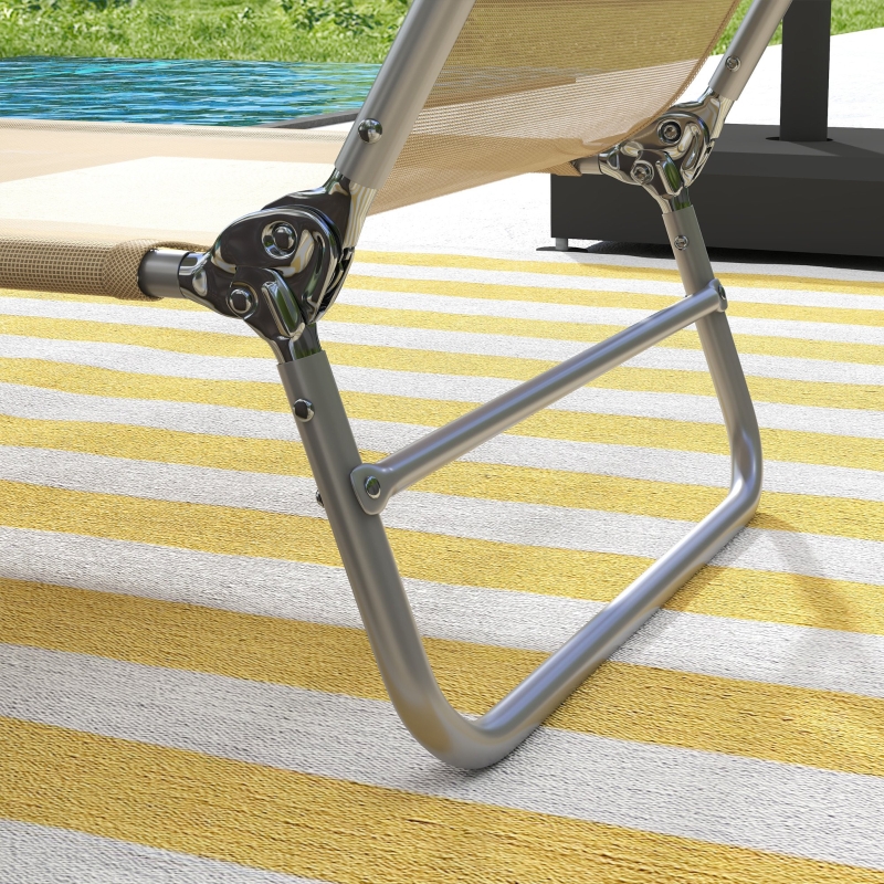 Folding sun lounger: Both are easy to carry and store – take and use in plenty of places. || Adjustable back: Set garden sun lounger to a position of your choice. Lay down or be propped up – completely up to you. || Steel frame: Powder coated metal for a strong core, keeps you supported all use long. || Fabric seat and pillow: Soft and comfortable to sink into. || Dimensions: 28H x 182L x 56Wcm. Folding: 8H x 67L x 57Wcm. Maximum load 120kg.