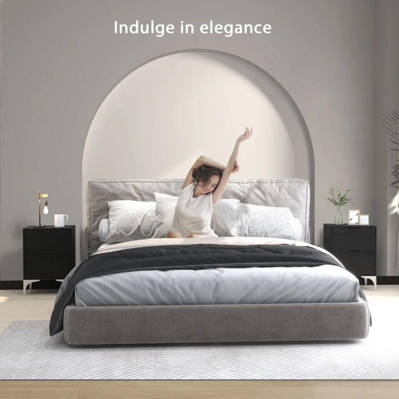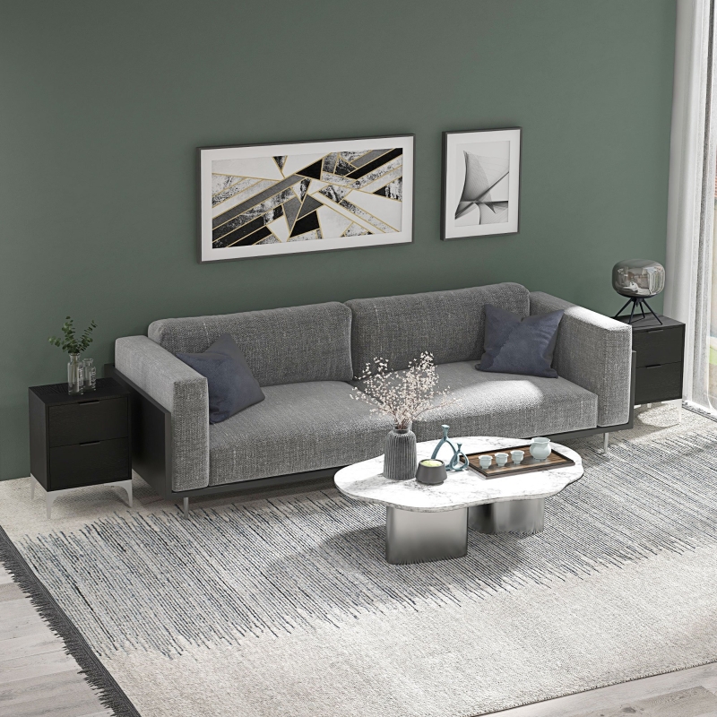 Set of two: Matching bedside tables can be used together in one room, or separately. || Two drawers: Nightstand set offers lots of space for your nighttime essentials, keeping everything within reach. Tabletops offer display space. || Wood effect design: Each bedside table with drawers adopts a classic furniture look – easy to match with your current pieces. || Steel legs: A strong, supportive base for these bedside drawers. || Dimensions: 56H x 40W x 30Dcm. Maximum load 20kg. Assembly required.