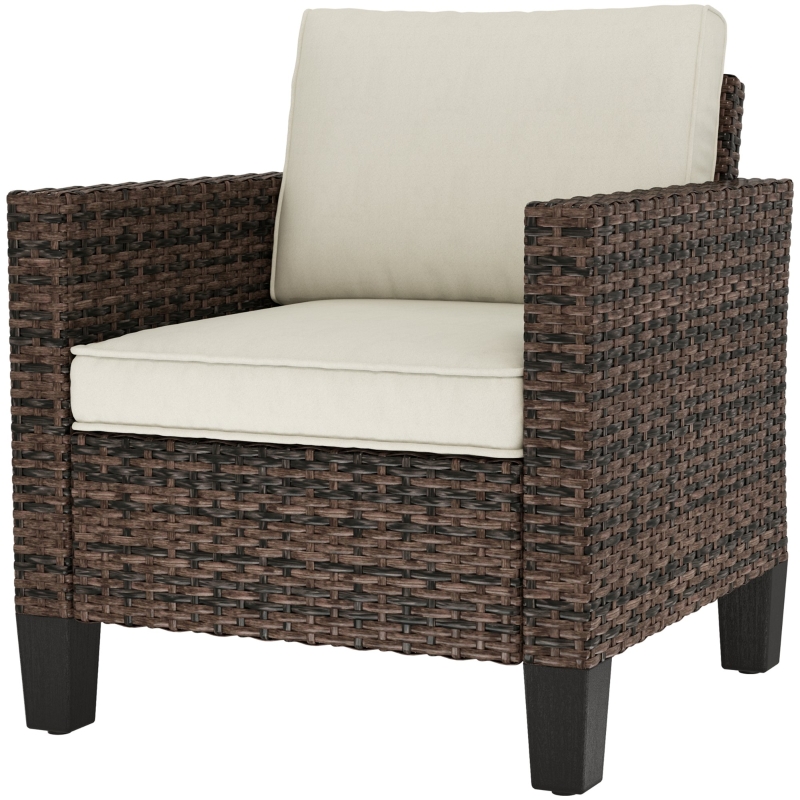 Rattan single garden chair: Features a deep, wide seat with armrests and a sloping back – unwind in style with this comfortable rattan chair in your garden, deck, or even porch. || Padded seat and back cushions: Sit and relax comfortably on this rattan garden chair with soft cushions. Covers with zips are removable for hygiene. || Steel frame, wrapped in rattan: Galvanised steel frame with a powder coating means a strong core for this balcony chair, stylish and tough plastic wicker for a protective outer layer. || Adjustable foot pads: A stable base, the garden rattan chair with tapered feet stands steady and balanced whenever and wherever you need. || Dimensions: 75H x 72W x 74D cm. Maximum load: 120kg. Easy assembly required within an hour by single.