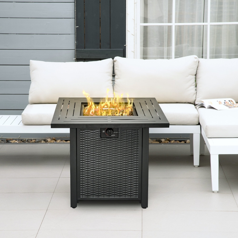 Best Square Propane Gas Fire Pit Table, 40000 BTU Rattan Smokeless Firepit Patio Heater with Protective Cover, Lava Rocks and Lid, 71cm x 71cm x 62cm, Black