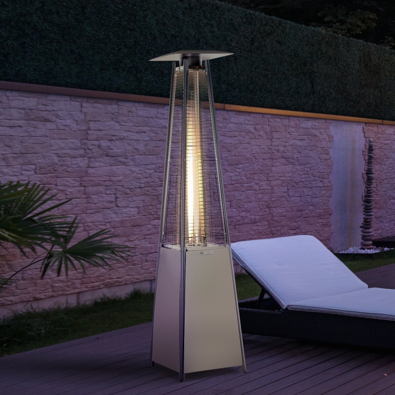 STABLE AND SAFE: It is made from stainless steel and has a safety netting to protect you from the flame to gether. with an anti-tilt switch and automatic safety shut off switch to protect you from accident. || LOW/HIGH HEAT SETTING: The patio heater is designed with ease of use with temperature control knob to get the most ideal setting and creates a warm inviting heating source || EASY TO MOVE: Uses propane, butane or LPG fuel sources; 42000 BTU’s heat up to a 10m³ area. Two wheels on the bottom for easy movement || COVER INCLUDED: Protects heater from damage when not being used. DIMENSIONS: 227H x 49.5L x 49.5Wcm. Maximum Cylinder Size: Φ32 x 60Hcm, Maximum Cylinder Capacity: 13kg (Cylinder not included). || HOSE AND REGULATOR INCLUDED. ASSEMBLY REQUIRED.