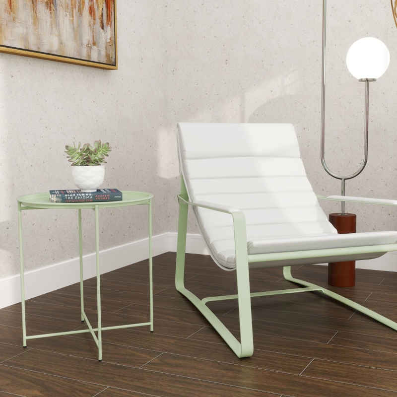 Removable tray tabletop: Can be separately used as a serving tray – a versatile round garden table. Suitable for carrying around drinks and plates whenever you need. || Folding steel frame: An easy small outdoor table you can bring out and store away, whenever needed. Painted finish for extra protection. Crossed legs for balance and support. || Adjustable foot pads: Easy to level outdoor side table on uneven surfaces, so it doesn’t wobble. || Versatile: Use this metal garden table to hold food and drink close to you, or even for holding and displaying ornaments. || Dimensions: 50H x Φ46 cm. Maximum load 30 kg. Easy to assemble with a plug-in structure.