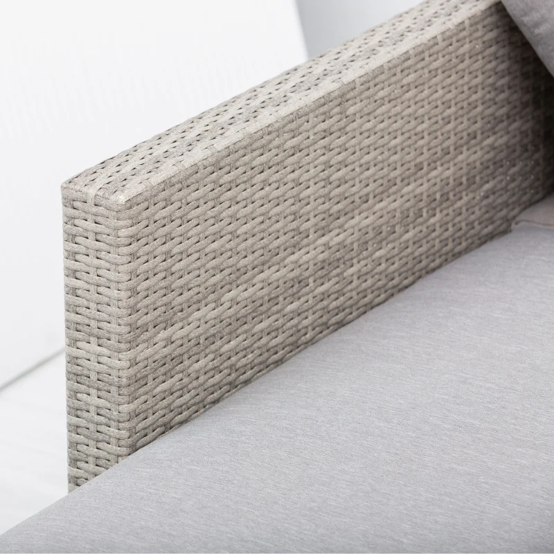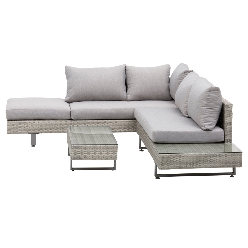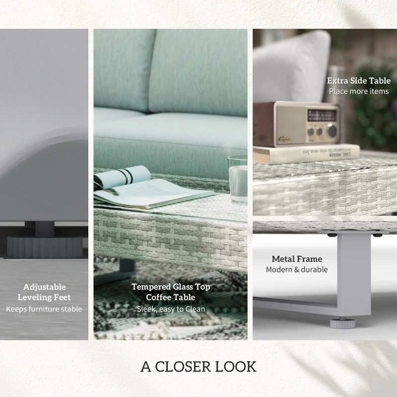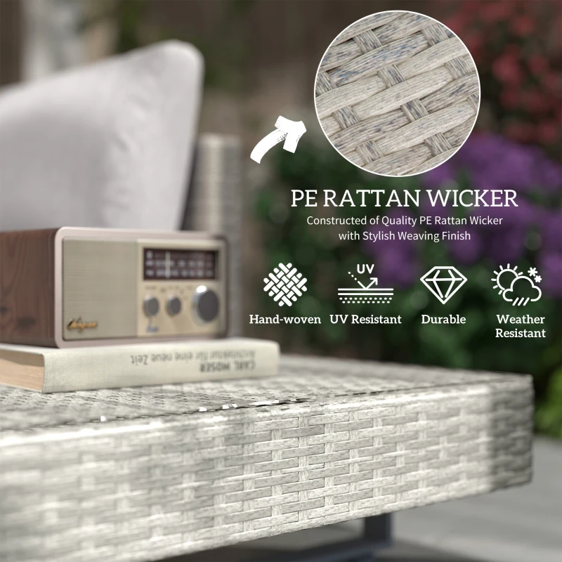 THREE-PIECE SET: Comes with two-seat sofa, three-seat sofa and table. Open design gives plenty of room for you to relax. End table is handy. || COMFORTABLE: Seat and back cushions allow you to sink in and relax for long periods. Covers are removable and washable. || METAL WRAPPED IN RATTAN: Powder coated for extra strength for a solid base structure, wrapped in weather-resistant PE wicker for extra durability. || METAL LEGS: An industrial contrast, supports all pieces and keeps set stable. || DIMENSIONS: Two-seater: 59H x 167W x 69Dcm. Three-seater: 59H x 196W x 69Dcm. Table: 25H x 90L x 40Wcm. || ASSEMBLY REQUIRED.