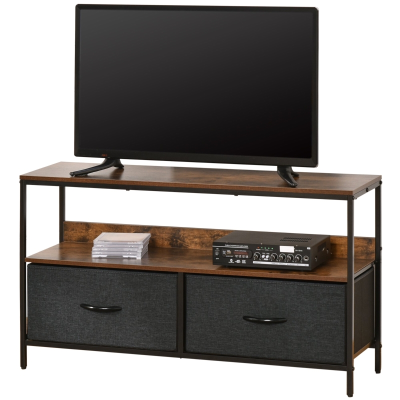 Best TV Stand Cabinet up to 47-inch, TV Unit with 2 Foldable Linen Drawers, Open Shelf for Living Room, Bedroom, Entertainment Room, Rustic Brown