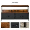LOTS OF STORAGE SPACE: This TV stand cabinet has two foldable drawer boxes and an open shelf with plenty of room for storing your magazines, DVD player, remote control, and more || TWO DRAWERS: Two foldable drawers of this TV table are made of linen, which are more breathable and can be folded up when not in use || STEEL FRAME: The frame of the TV bench is made of steel, which creates an industrial style and ensures its stability || ADAPTABILITY: This entertainment unit can hold up to 41 kg and is suitable for TVs up to 47 inches, perfect for living room and bedroom. Equipped with 4 adjustable foot pads at the bottom to keep the unit stable on uneven ground || DIMENSIONS: Overall Dimension: 98W x 29D x 56Hcm; Weight Capacity: 41kg (total), 3kg (drawer), 20kg (table top), 15kg (shelf)