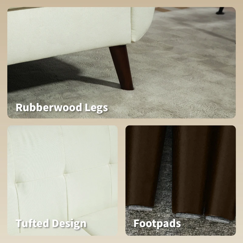 Two-seater: Small sofa is suitable for compact spaces – gives you a place to relax by yourself or with company. || High-density foam padding: Also with ‘S’ springs and elastic bands – loveseat sofa is soft and comfortable. || Wooden frame legs: A strong core for the settee, keeps you supported when seated. || Linen-look upholstery: A soft, smooth finish on bedroom sofa. Seat covers are removable and washable. || Dimensions: 75H x 138.5W x 70Dcm. Maximum load 250kg. Assembly required. Made from flame retardant materials.