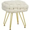 Bold design: Padded, cross-woven design, in a velvet-feel finish. This square soft seat adds plenty of character into your space. || Comfortable seating: Bedroom stool is filled with a medium-density sponge. Comfortable to rest on. || Steel legs: A strong and supportive base for this comfortable seat, with adjustable feet for balance. || Versatile: Use as a comfortable sitting stool or a handy leg rest, from the living room, to the hallway, bedroom and even the office. || Dimensions: 41.5H x 38W x 38D cm. Maximum load 120 kg. Assembly required.