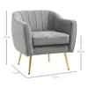 Elegant design: Wide tub shape, with line indenting to mimic a seashell. This cosy chair is a superb addition to living rooms, bedrooms, offices – and wherever else you want it. || Velvet-feel upholstery: A beautiful grey hue, this tub chair is super soft and adds to the unique design. || Padded seat: Double-layer thick padded seat for added comfort, so you can sit and relax comfortably in this accent chair. || Metal legs: Full support for this small armchair as you sit. Adjustable foot pads keep the balance. || Dimensions: 73H x 71W x 72Dcm. Seat: 48H x 47.5W x 51Dcm. Maximum load 125kg. Assembly required. Made from flame retardant materials.