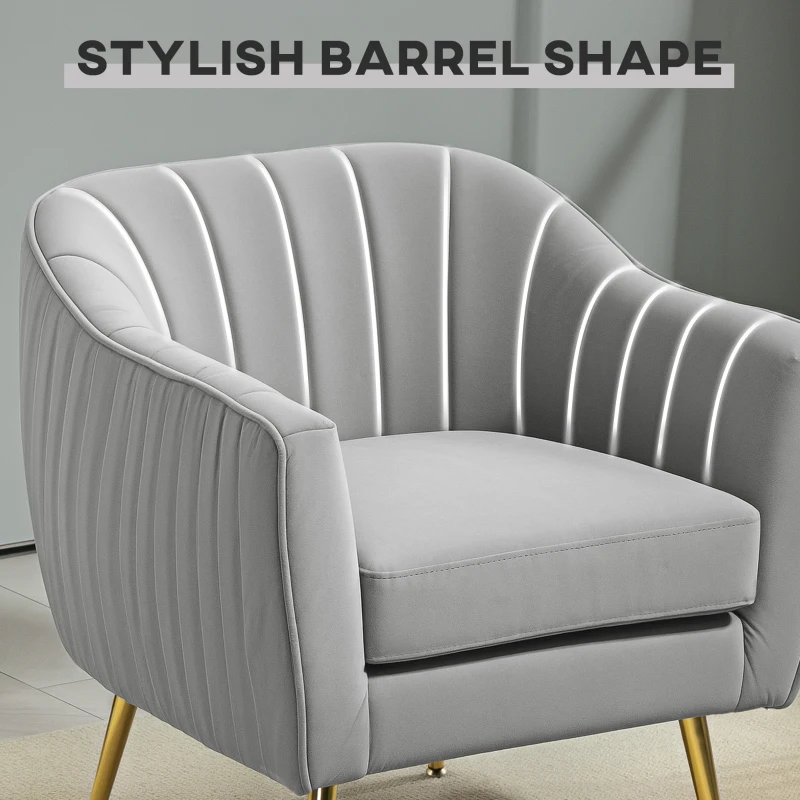Best Velvet-Feel Shell Back Accent Chair – Grey