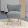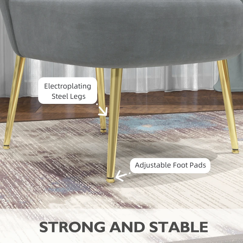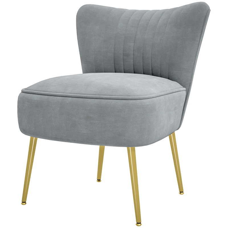 Elegant tub design: This lounge chair comes in an armless design in a rounded finish, with velvet-feel upholstery. Gold tone coloured legs for a luxe touch. || Comfortable: Armless cocktail chair comes with thickly padded seat and back – great to sink into. || Steel legs: Strong and supportive base for the armless chair, with adjustable feet for balance. || Velvet-feel upholstery: Adds to the overall elegance of this living room chair – soft and beautiful. || Dimensions: 69.5H x 53W x 69.5Dcm. Seat: 43.5H x 53W x 48.5Dcm. Maximum load 120kg. Assembly required.
