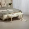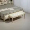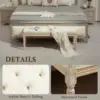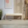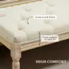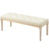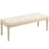 Stylish: Button tufted top seat, with a distressed frame – bed end bench provides your home with a vintage touch. || Versatile: This tufted bench is a practical choice for added seating at the foot of the bed, in a hallway or by the window side. || Softly upholstered: With a cushioned seat and linen-touch fabric, sit comfortably on this tufted fabric bench. || Wooden frame: A strong core, sit supported on this bedroom bench. Beautiful natural finish. || Dimensions: 43H x 115W x 40Dcm. Legs: 31H x Φ4.5cm. Maximum load 220kg. Assembly required.