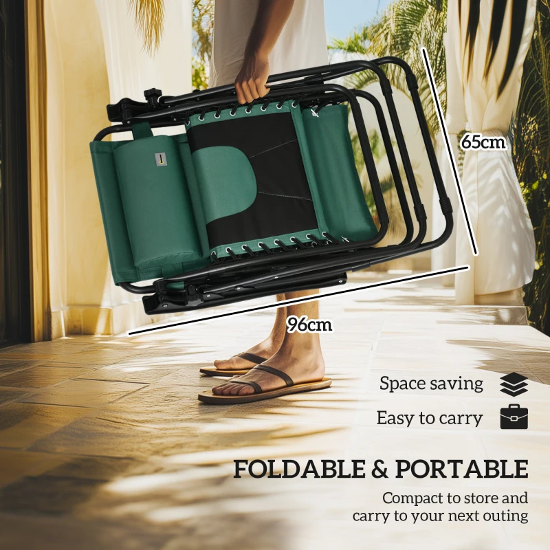 Zero gravity chair set of two: Cool design outdoor chairs for a stress-free weightless, keeping you relaxed. Great for your patio, garden, balcony or any other indoor/outdoor areas. || Adjustable reclining position: Relax with the smooth recline function. Padded seating with removable padded headrest for added comfort in lounging time || Solid: Steel frame is strong, anti-peeling and corrosion resistant. Fabric seat to sit with support. Foldable – easy to carry and store. || Cup holder and canopy: Shade keeps you cool as you recline. Tray with cup holder allows easy access to drinks, magazines, phones, tablets and other small items. || Dimensions: 89D x 65W x 113H cm. Folded: 96L x 65W x 14H cm. Max Load: 120 kg.