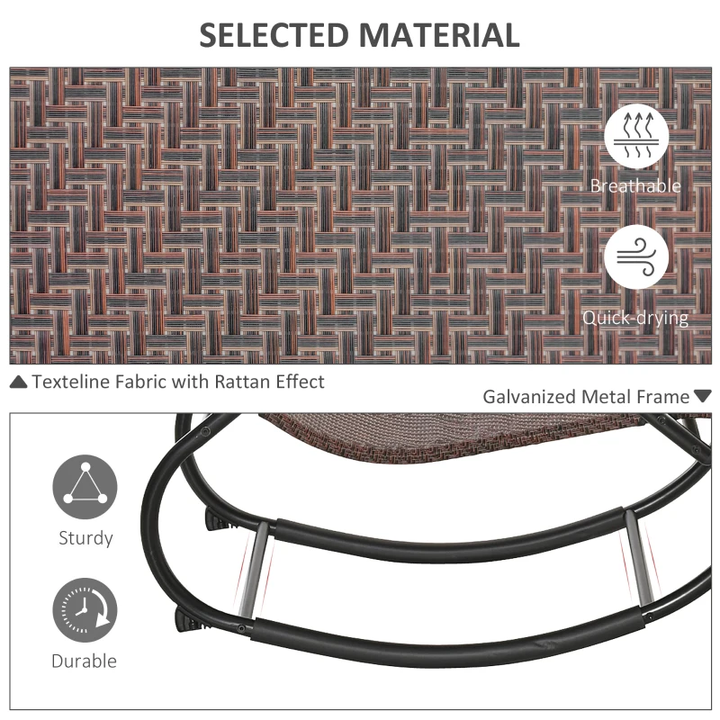 COMFORTABLE: Ergonomic shape adapts to your body for support. Our rocking chair outdoor includes a rocking base for extra relaxation, whilst the removable padded headrest keeps you comfy. || RATTAN-EFFECT SEAT: Imitates a weave finish, yet is tougher and more durable. Our garden rocking chairs will match well with your other garden furniture. || ROCKING METAL FRAME: Curved bottom so this outdoor rocking chair moves forwards and backwards gently – you can relax easily. Structure is strong and fully supports your weight. || DIMENSIONS: 79H x 61W x 160Dcm. Seat: 33H x 52W x 40Dcm. || MAXIMUM LOAD 160KG. ASSEMBLY REQUIRED.