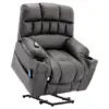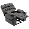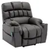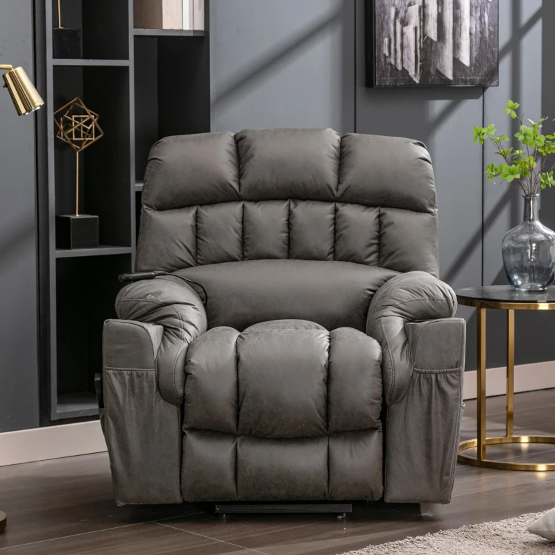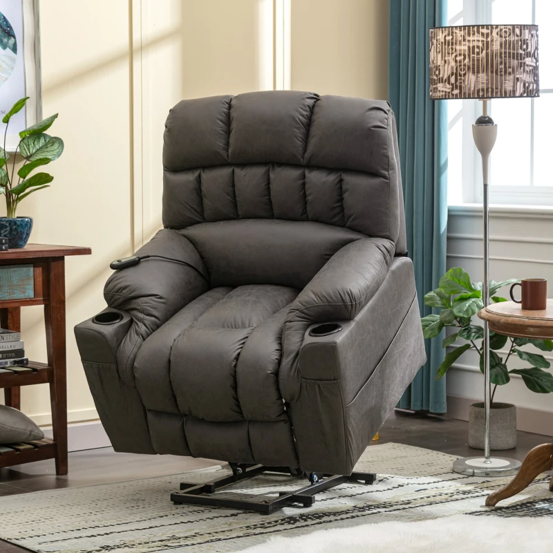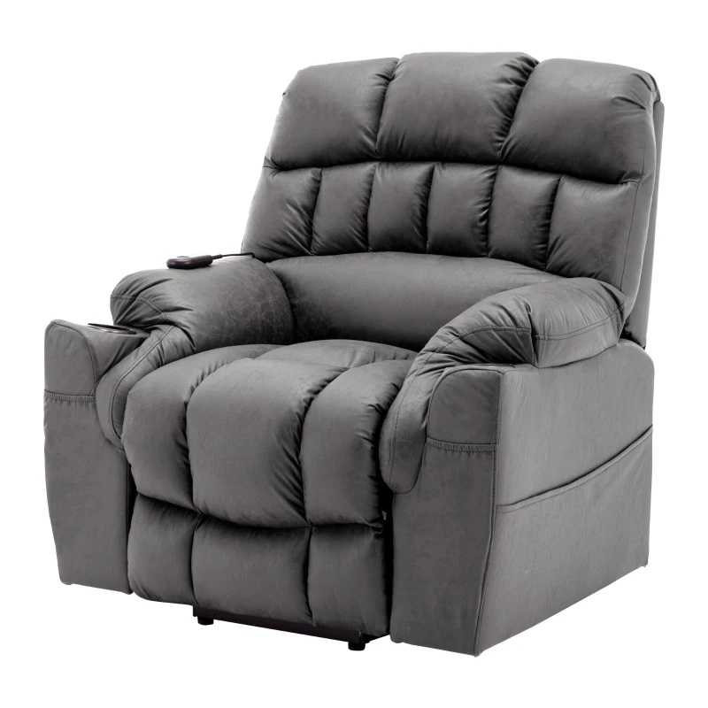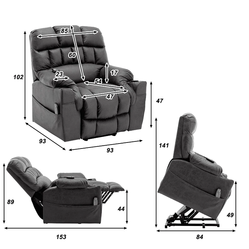 Easy to operate: Powered by a TUV-certified motor mechanism, this recliner allows users to smoothly lift or recline to the desired position using two buttons on the remote control; Ideal for adults, the elderly, the disabled, and pregnant women for watching TV, reading, or resting. || Vibrational massage: Features 8 vibrating points covering the back, lumbar, thighs, and legs, along with a lumbar heating function; Offers 5 massage modes pulse, press, wave, auto, normal; Easily switch the massage on and off with the power button. || Soft and comfortable: The back support includes special, bouncy foam for long-lasting comfort and durability; Covered in soft fabric with plush padding, the head padding is ergonomically designed to relax your head and neck. || Storage pockets and cup holders: Equipped with 2 side pockets and 2 front pockets for storing mobile phones, magazines, or TV remotes; Dual cup holders keep drinks within reach for a better experience. || Easy assembly: Packaged in two boxes that may not arrive simultaneously; Can be conveniently assembled without tools; The controller can be placed in the side pocket to prevent accidental button presses.