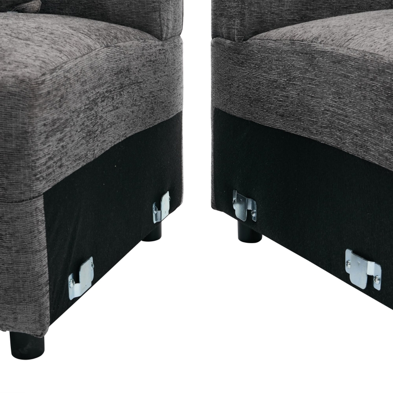 L-Shaped Sectional Sofa with Removable Storage Ottoman and 2 Pillows, Fabric Upholstery, 204L x 68W x 69H cm, Grey quantity