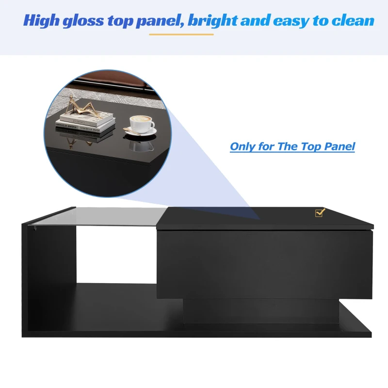 LED Coffee Table with Smart App-Controlled RGB Lighting, High Gloss Finish, Glass Top and Drawer, 100L x 50W x 32H cm, Black quantity