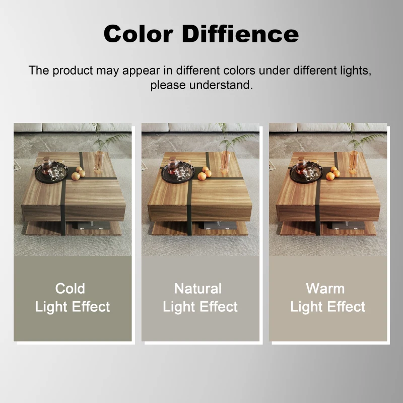 Square Coffee Table with 4 Drawers, Unique Pattern, Bottom Storage, 78L x 78W x 36H cm, Natural quantity