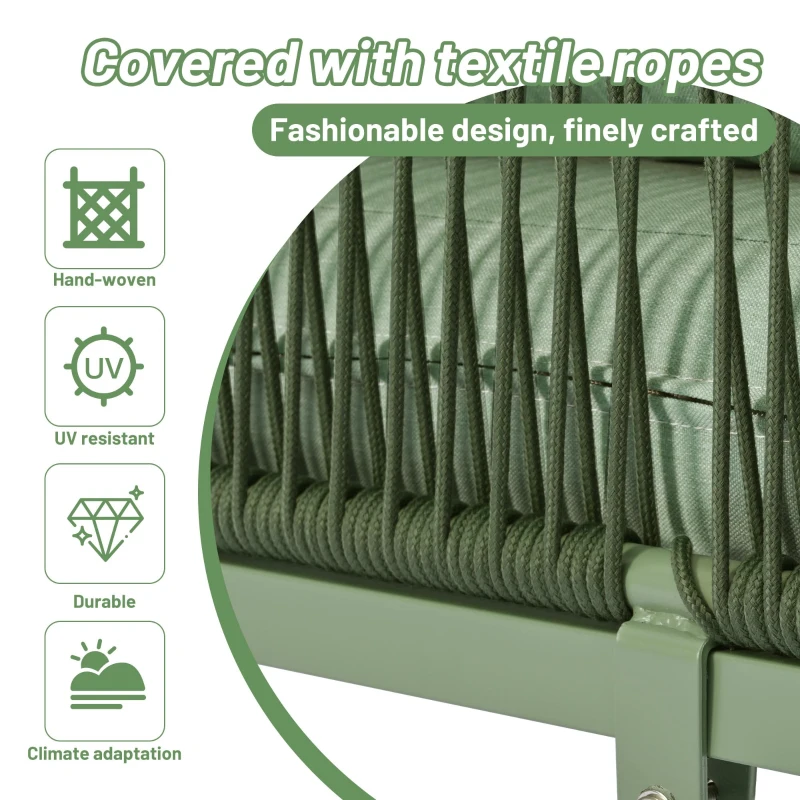 UV-Resistant Garden Lounge Set with Glass Coffee Table, Thick Cushions, L-Shaped Corner Sofa for 4-5 People, 120L x 60W x 86H cm, Green