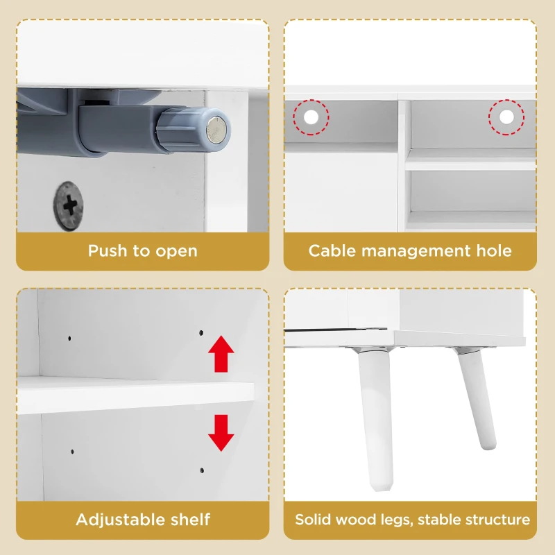 Best TV Cabinet Stand Unit for TVs up to 50” with Foldable Drawers, Entertainment Centre for Living Room White