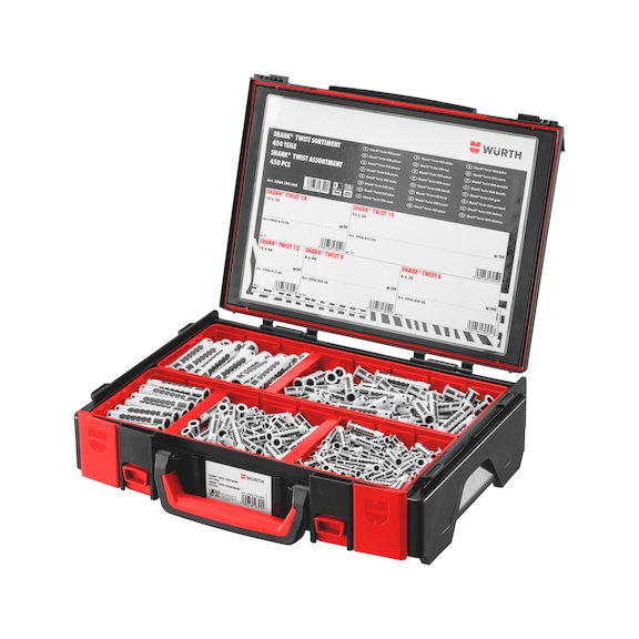 One anchor. Eight knots. The innovative multi-purpose anchor combines performance, flexibility and ease of installation, thereby offering a wide range of possible applications. The assortment includes all SHARK® TWIST sizes in one system case. | ® | Quick, flexible installation | Easy: Can be set flush using a finger without the need for a hammer