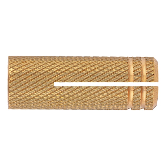 Can be applied without setting tools | Knurled surface for good grip | Screwing a screw/threaded rod with a metric thread causes the anchor to expand and anchor to the substrate | Corrosion-resistant | Low anchoring depth | Small edge and axial clearances | Suitable for push-through and cotter-pin installation | Can be applied without setting tools | Drill the hole
