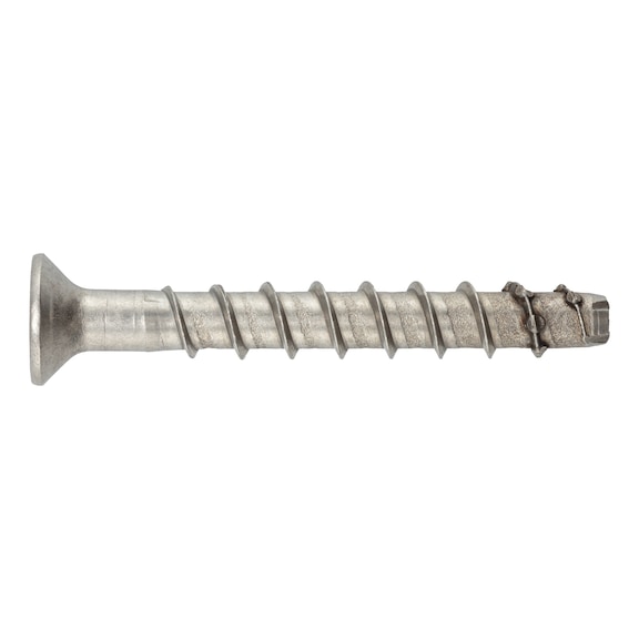 High working loads and easy installation. The new generation of concrete screws in A4 stainless steel. For flush mounting of e.g. staircase railings or handrails in concrete | The new thread geometry ensures smooth screwing into the concrete and thus greater efficiency