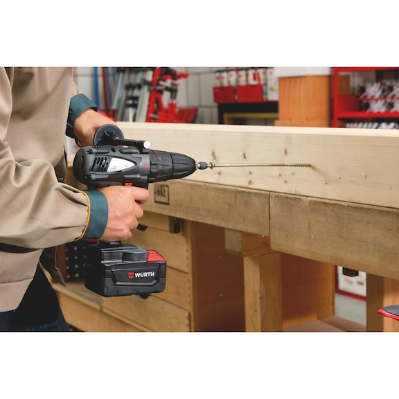 Optimal illumination of the work surface via LED lighting | With selectable impact mechanism for impact drilling in stone and masonry | Ideal for applications involving high torque due to the improved, more powerful motor | Low weight, high performance and no memory effect of the rechargeable battery due to the lithium-ion technology | Continuous monitoring of the rechargeable battery capacity with the state-of-charge indicator on the rechargeable battery | Overload protection minimises the risk of damage to the power tool and rechargeable battery caused by overloading | A long service life and optimal power transmission due to the high-quality two-speed planetary gearbox with aluminium housing | Tool-free changing of the drill bit due to the quick-action drill chuck with spindle lock and low-wear carbide inserts | Optimal illumination of the work surface via LED lighting