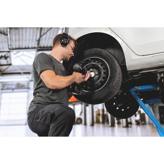 High rotation speed and impact frequency result in a higher breakaway torque of up to approx. 800 Nm, which also enables jammed wheel nuts to be loosened