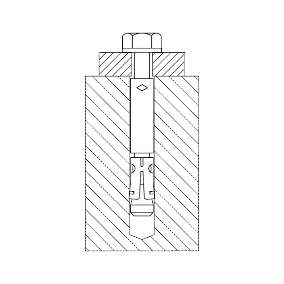 Also suitable for temporary anchorages (cotter-pin installation, e.g. flexible stadium seating – flush with surface to eliminate risk of injury) | High load-bearing capacity, low centre to centre and edge clearance | Immediate load-bearing capacity – no waiting | Torque-controlled expanding anchor made from galvanised steel | Safe expansion in cracked concrete owing to fixing anchor cone with patented plastic coating | Countersunk screws ensure an elegant appearance for visible anchorages combined with high load-bearing capacity (e.g. railings) | Also suitable for temporary anchorages (cotter-pin installation, e.g. flexible stadium seating – flush with surface to eliminate risk of injury) | Proof of Performance | ETA-99/0011 for individual attachment, option 1, cracked and non-cracked concrete