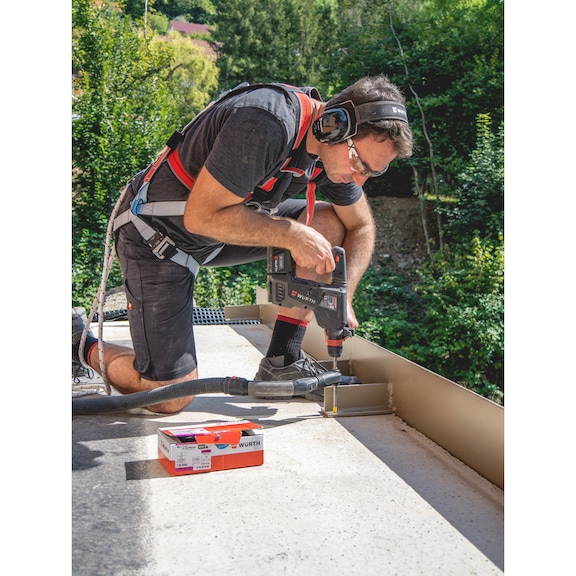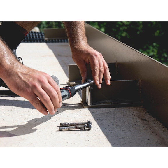 Metal substructures | Heavy steel structures | Heavy steel structures | Post support bracket | Post support bracket | Fastening of railings | Fastening of railings | Metal substructures | Metal substructures | Create the drill hole | Create the drill hole | Create the drill hole | Create the drill hole | European Technical Approval ETA-20/0229 for individual attachment, option 1, cracked and non-cracked concrete: | Static or quasi-static exposure (M8 – M16)