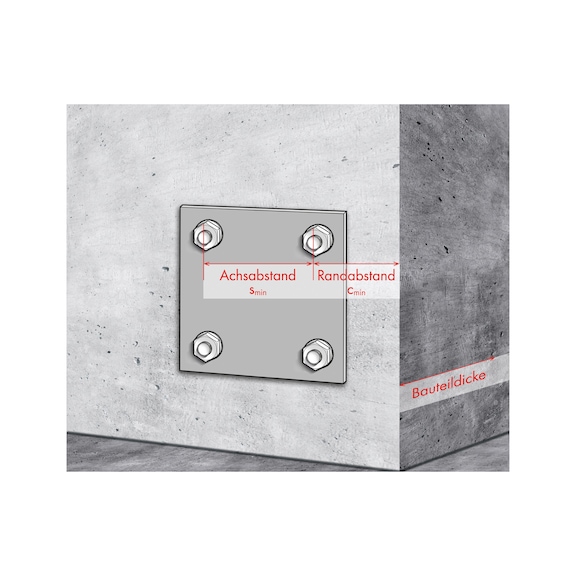 Fire resistance R30, R60, R90, R120 | Static or quasi-static action (M8-M16) | Seismic action, performance category C1 and C2 (M8-M16) | Fire resistance R30, R60, R90, R120 | Load-bearing behaviour and fire resistance (uniform temperature curve) – expert report no. GS 6.1/20-018-1: | Fire duration 180 minutes (M8-M16) | Fire duration 180 minutes (M8-M16) | Swiss Federal Office for Civil Protection (Bundesamt für Bevölkerungsschutz, BABS) – Approval for shock testing BZS D 20-602 | Use in Swiss civil protection buildings (M8-M16, from standard anchorage depth hef,std) | Use in Swiss civil protection buildings (M8-M16, from standard anchorage depth hef,std) | ef,std) | Application area | Fastening of railings