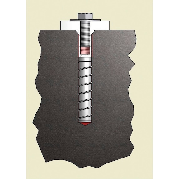 Anchoring by bond between chemical injection mortar WIT-PE 1000, tarmac and tarmac screw anchor as well as mechanical interlock between tarmac and tarmac fixing bolt