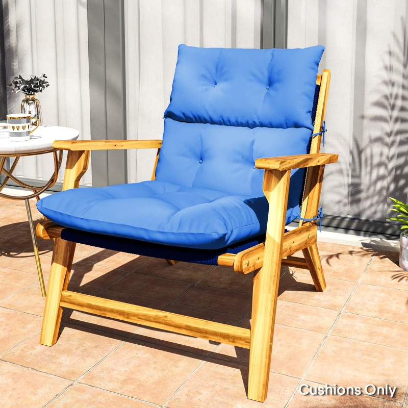 Garden seat cushion: A replacement for Adirondack and rocking chairs, bringing revitalised comfort with its high-resilience filling || 10 cm thickness: Relax in comfort with this thick outdoor seat pad with button decoration to prevent filling from shifting || Polyester cover: Smooth on the skin. Fade and stain resistant. The garden cushion is suitable for indoor and outdoor use with easy maintenance || Tie fastenings: Easy to fix this garden recliner chair cushion onto your furniture, so it doesn’t move around || Dimensions: 115L x 56W x 10D cm; Backrest and Seat Total Length: 115 cm; Seat Width: 55 cm