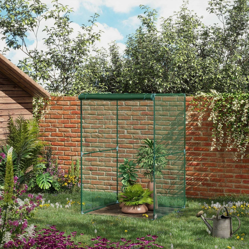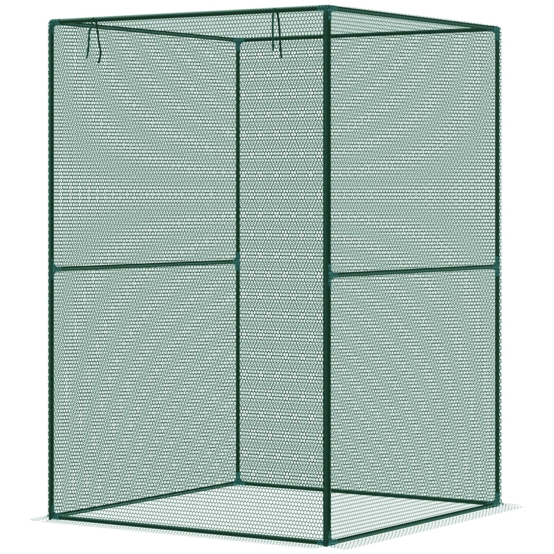 120 x 120cm plant protection cage: A safe shelter for growing plants, vegetables, flowers, fruit and more. This brassica netting cage helps prevent birds and small animals from entering. || Large zipped door: Easy to access inside this vegetable cage, allowing you to prune, trim and collect growing greenery. || Steel frame with mesh cover: A strong core for this brassica cage. Tear-resistant fruit cage netting means a tough and protective outer, to protect inner plants. || Ground stakes included: Fruit cage easily mounts to the ground, helping it stay in place. || Dimensions: 180H x 120W x 120Dcm. Door: 180H x 120Wcm. For easier assembly, two people are recommended.