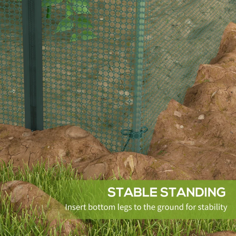 Easy set-up and portable design: The brassica netting cage provides a safe and temporary, protective place for vegetables, fruits, flowers and more. Tall and compact, easy to place in many different spaces. || Zipped walk-in door: Easy to enter and leave fruit netting cage. Rolls up to hold in place. || Steel frame: Galvanised for extra strength, fruit cage netting stands upright in place. Insert the bottom frame into ground for extra stability. || Tear-resistant mesh cover: A protective vegetable cage to shield plants and help them grow as healthier possible. || Dimensions: 188H x 120W x 120Dcm. Door: 174H x 70Wcm. 1-2 recommended for assembly.