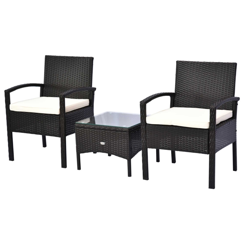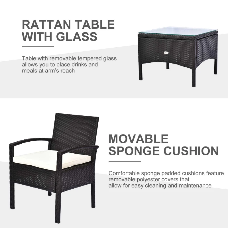 MORDEN RATTAN SET: The rattan bistro set includes 2 chairs and 1 coffee table || DURABLE MATERIAL: This balcony furniture made of steel tube construction and high quality PE rattan, stands up for long term use || COMFORTABLE CUSHION: The bistro table and chairs set with deep armchair with soft padded cushion to provide cozy sitting experience || WIDELY USED: This balcony furniture is Ideal for backyard, garden, patio or pool areas || DIMENSIONS: 2xChair Size: 59W x 59L x 84H cm; Tea Table Size: 50L x 50W x 38H cm; Chair Weight Capacity:160kg; Tea Table Weight Capacity: 50kg